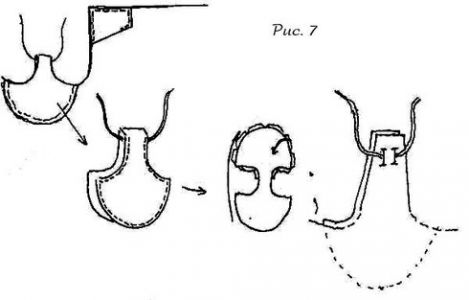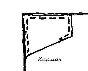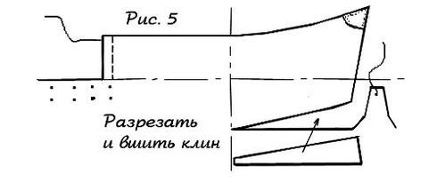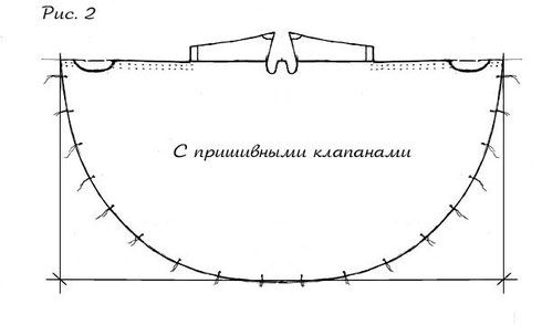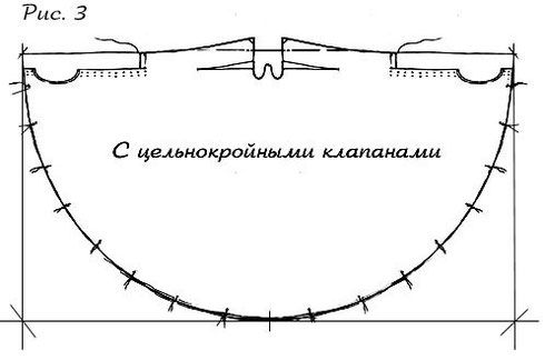 Цельнокройные клапана обычно делались длиннее сантиметров на 20 и уже. Для того чтобы расширить цельнокройный клапан необходимо вшить в него клин, разрезав клапан сверху примерно до половины (рисунок 5)