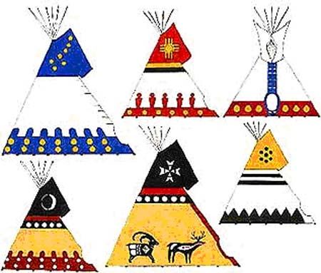 Индейцы расписывали типи теми красками, которые можно добыть в природе, поэтому существует всего несколько традиционных цветов. Но цвета для них, как и все остальное, были полны смысла, поэтому даже когда они получили возможность покупать синтетические краски (масляные или акриловые), они все равно выбирали понятную для них гамму.